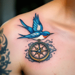 Tetování pták s kompasem, námořníci pod klíční kost
