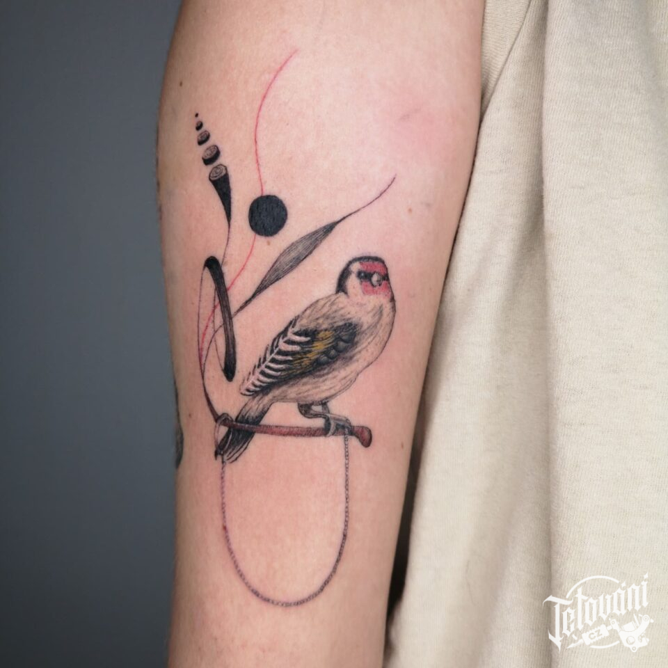 Tetování pták, zvíře, portrét, větvička na paži
