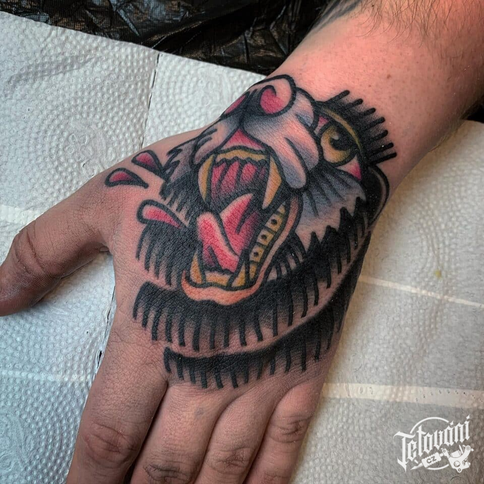 Tetování puma na hřbetu ruky