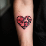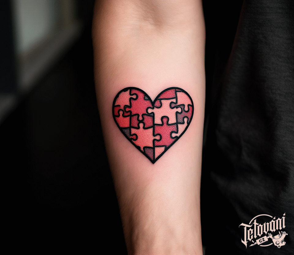 Tetování puzzle srdce na předloktí