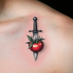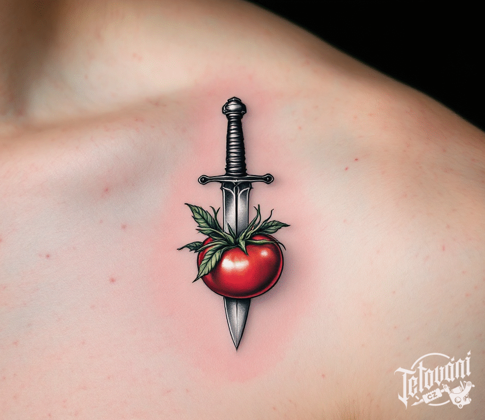 Tetování rajče s dýkou, kuchaři pod klíční kost