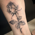 Tetování realistické růže na lýtku