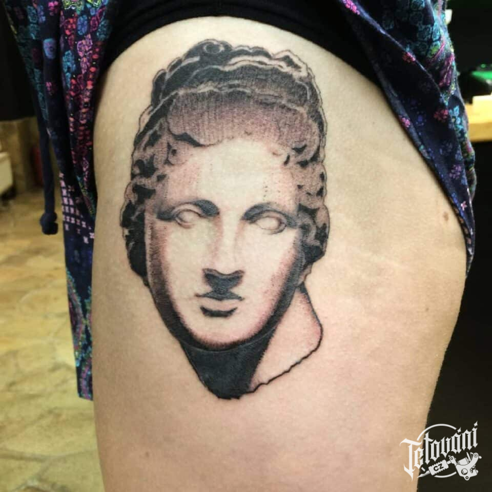 Tetování realistika na bok stehno