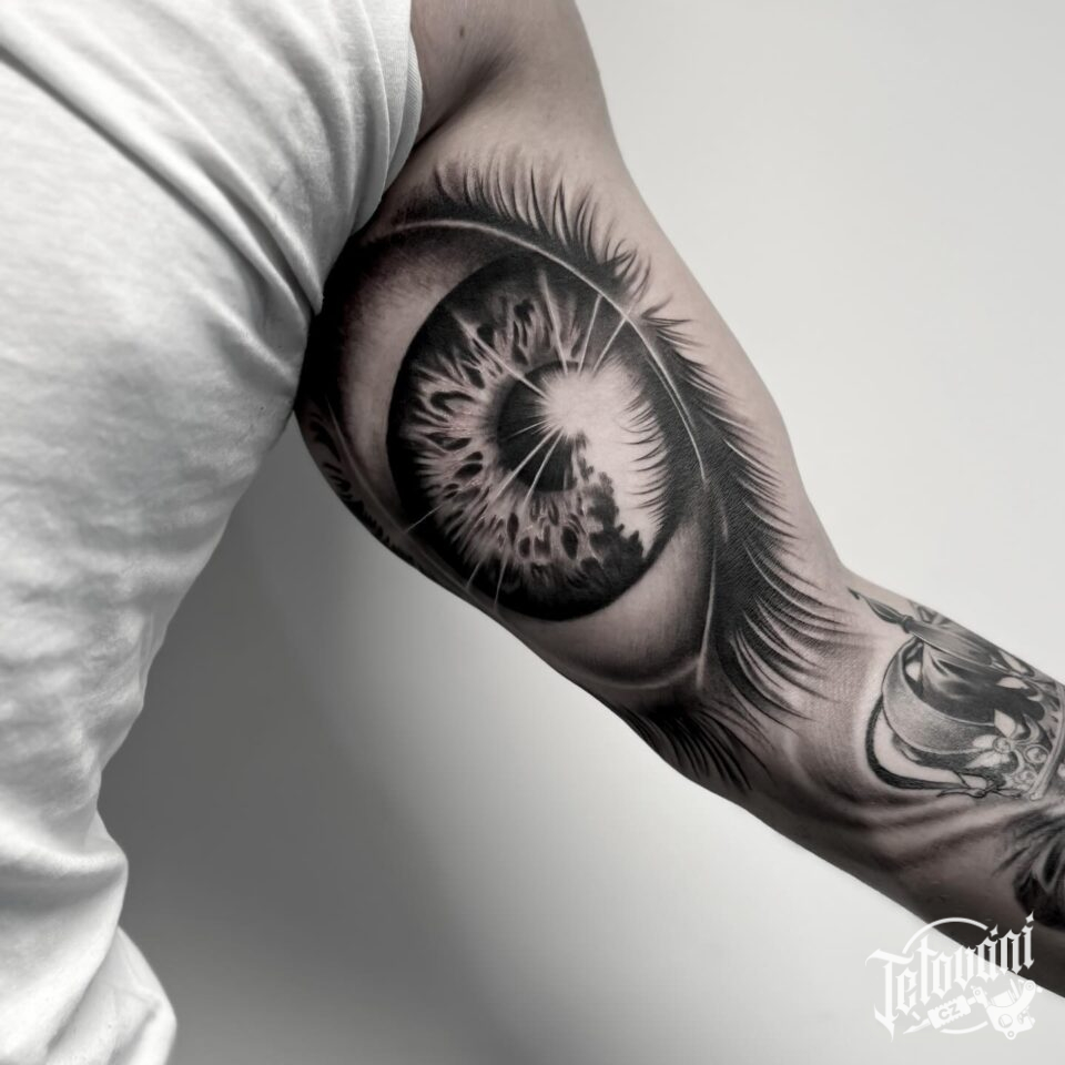 Tetování realistika oko, symbol na paži