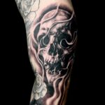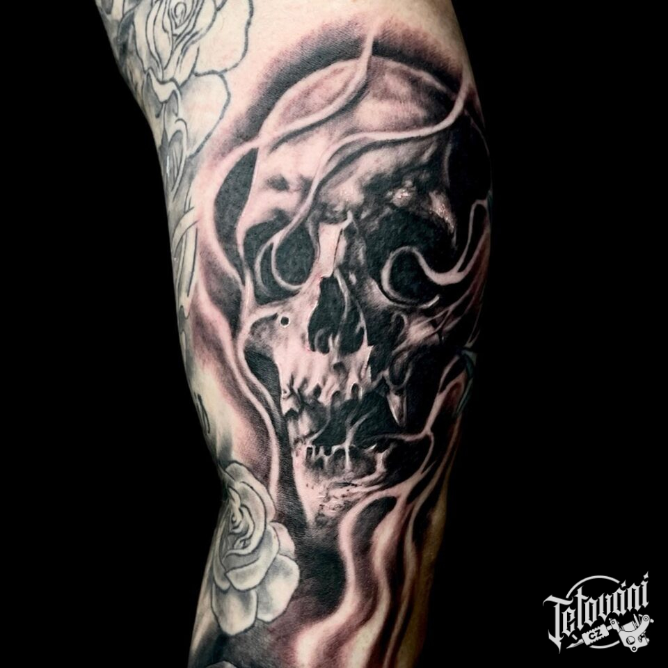 Tetování realistika, portrét lebky, symbol smrt na rameno