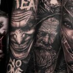 Tetování realistika, portréty z filmů a pohádek, žena, nápisy na předloktí