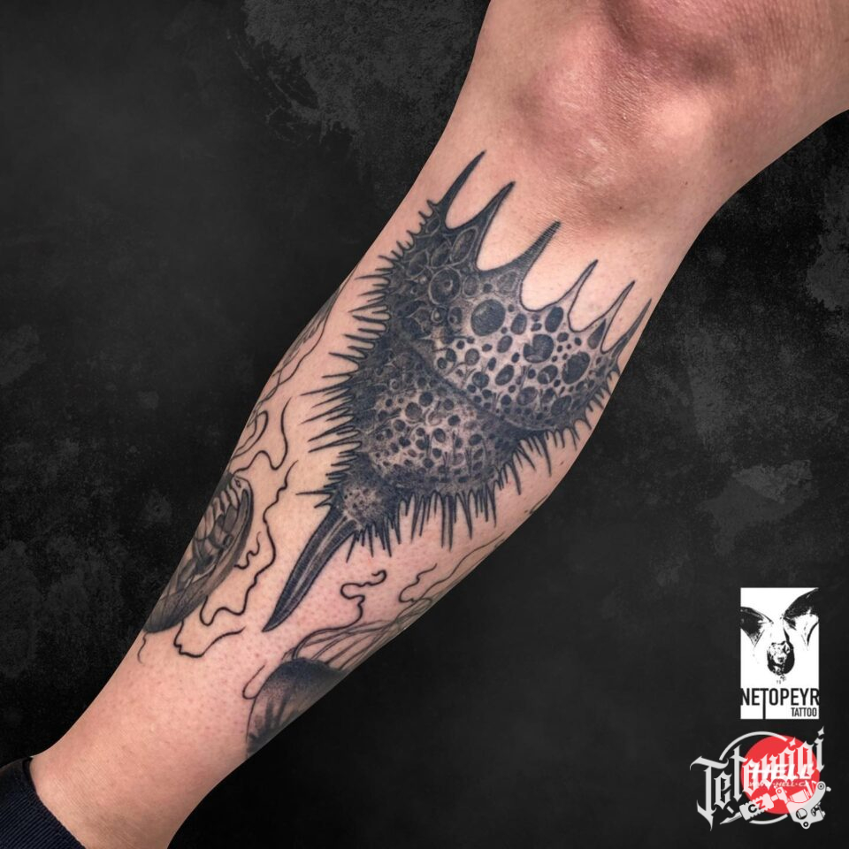 Tetování realistika, znaky a symboly na holeň