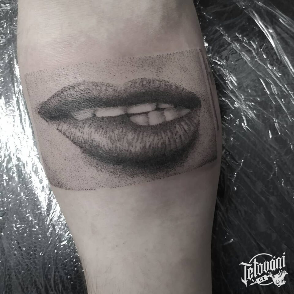Tetování realistika, znaky a symboly, pusa na předloktí