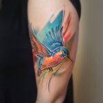 Tetování realistika, zvíře, pták, kolibřík na rameno