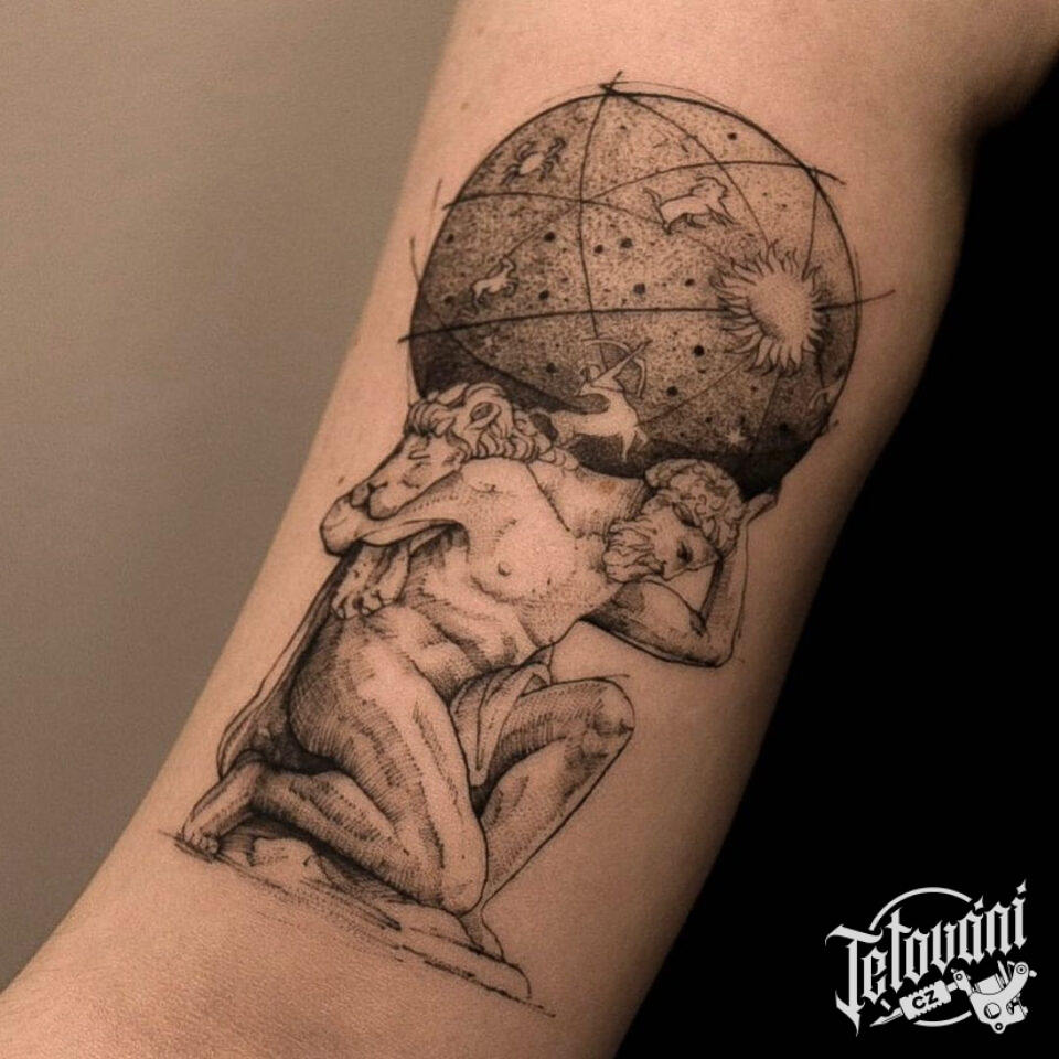 Tetování řecká mytologie, mýtická bytost Atlás na rameno