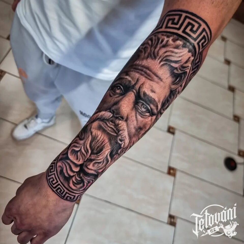 Tetování řecká mytologie, mýtická bytost Zeus na předloktí