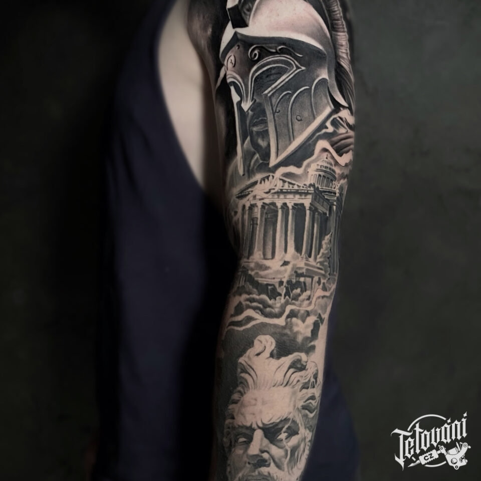 Tetování řecká mytologie, sparťanský bojovník a mýtická bytost Zeus na ruku