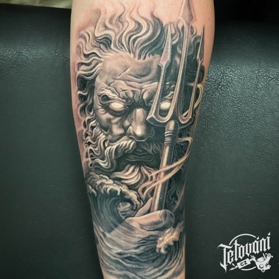 Tetování řecké mytologie, bůh Poseidon na předloktí