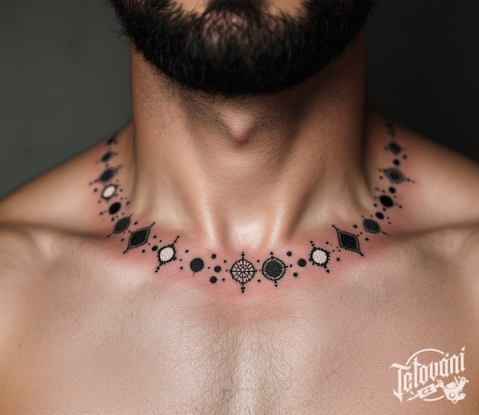 Tetování řetízek, tečky na krku