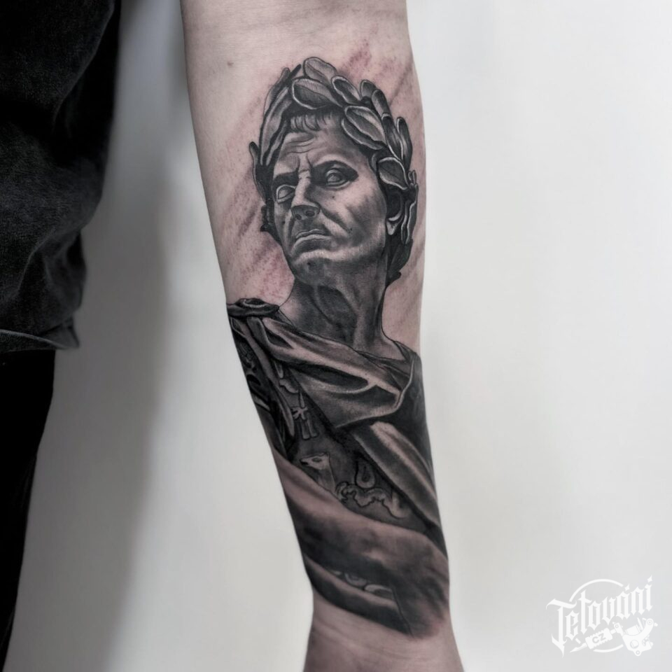 Tetování římská mytologie Ave Caesar na předloktí