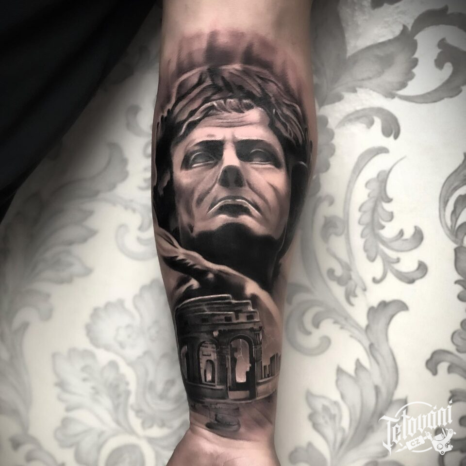 Tetování římská mytologie, mýtická bytost Caesar na předloktí
