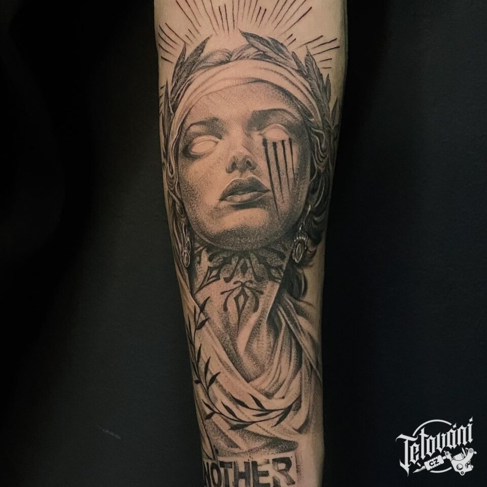Tetování římská mytologie, žena na předloktí
