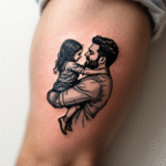 Tetování rodiče, rodina, otec s dcerou na rameno