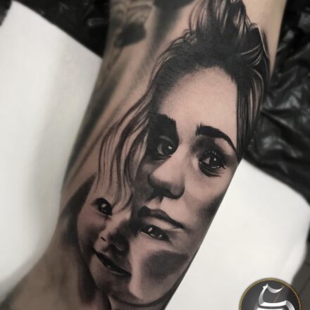 Tetování rodina, děti, portrét ženy na předloktí