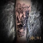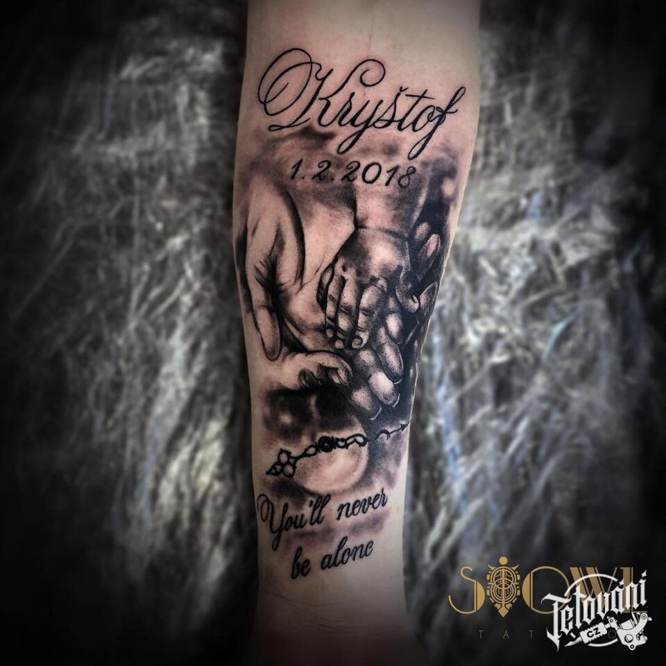 Tetování rodina, dítě, jméno, ruce na předloktí