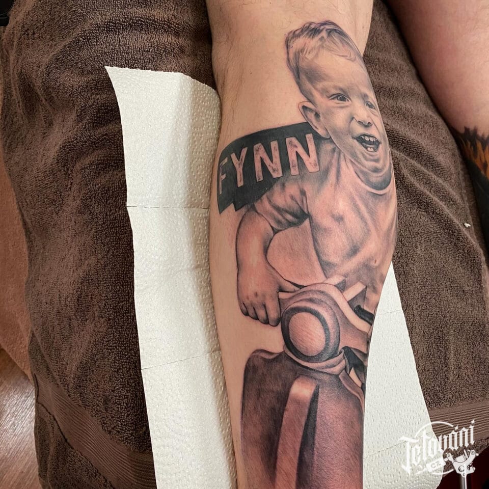 Tetování rodina, dítě na lýtko