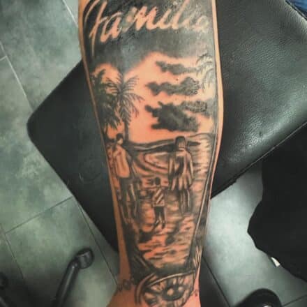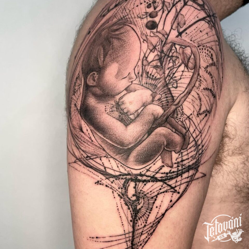 Tetování rodina, dítě na rameni