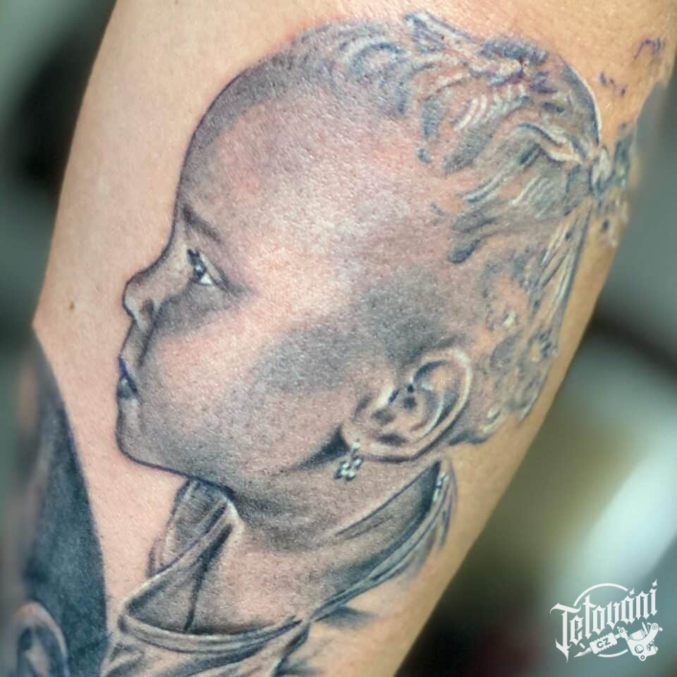 Tetování rodina, dítě, portrét na rameno