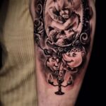 Tetování rodina, dítě, postavičky z filmů a pohádek na rameno