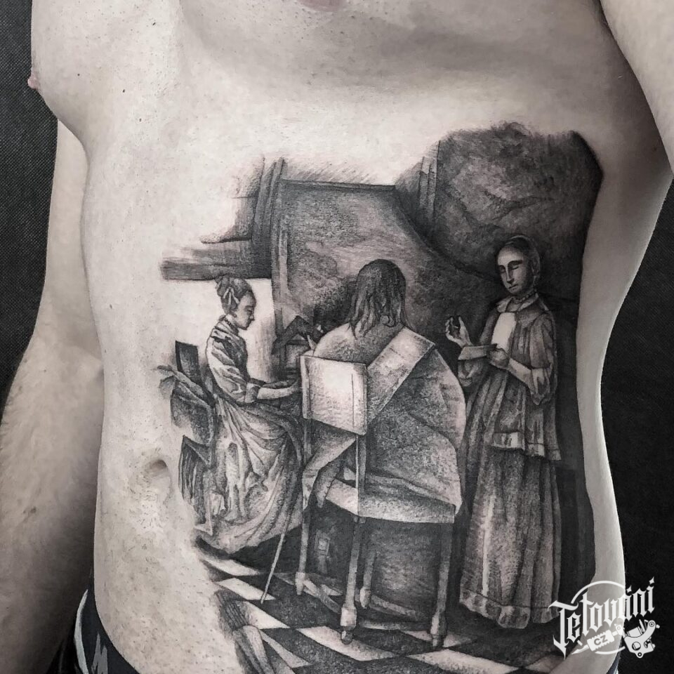 Tetování rodina na břichu