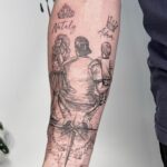 Tetování rodina, muž a děti na předloktí