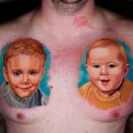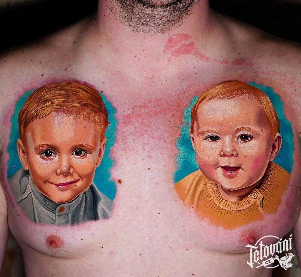 Tetování rodina, portréty dětí na hrudi