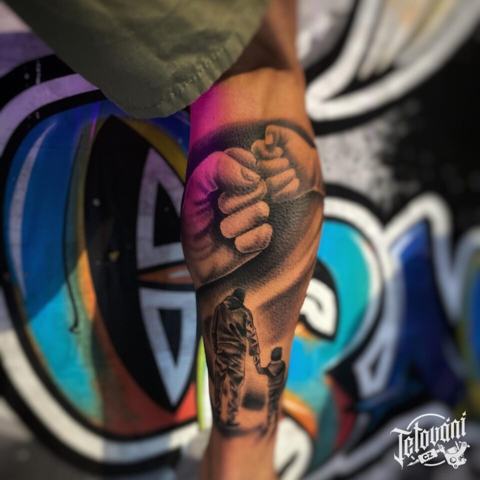 Tetování rodina, rodiče, ruce na lýtko