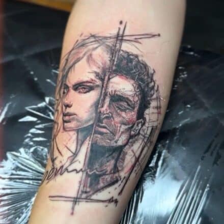 Tetování rodina, žena a dítě na paži