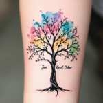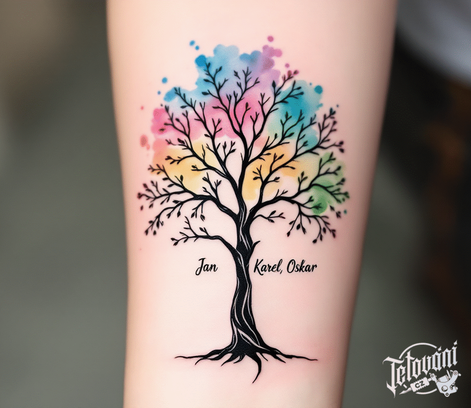 Tetování rodokmen, strom s barvami na předloktí