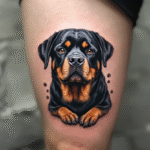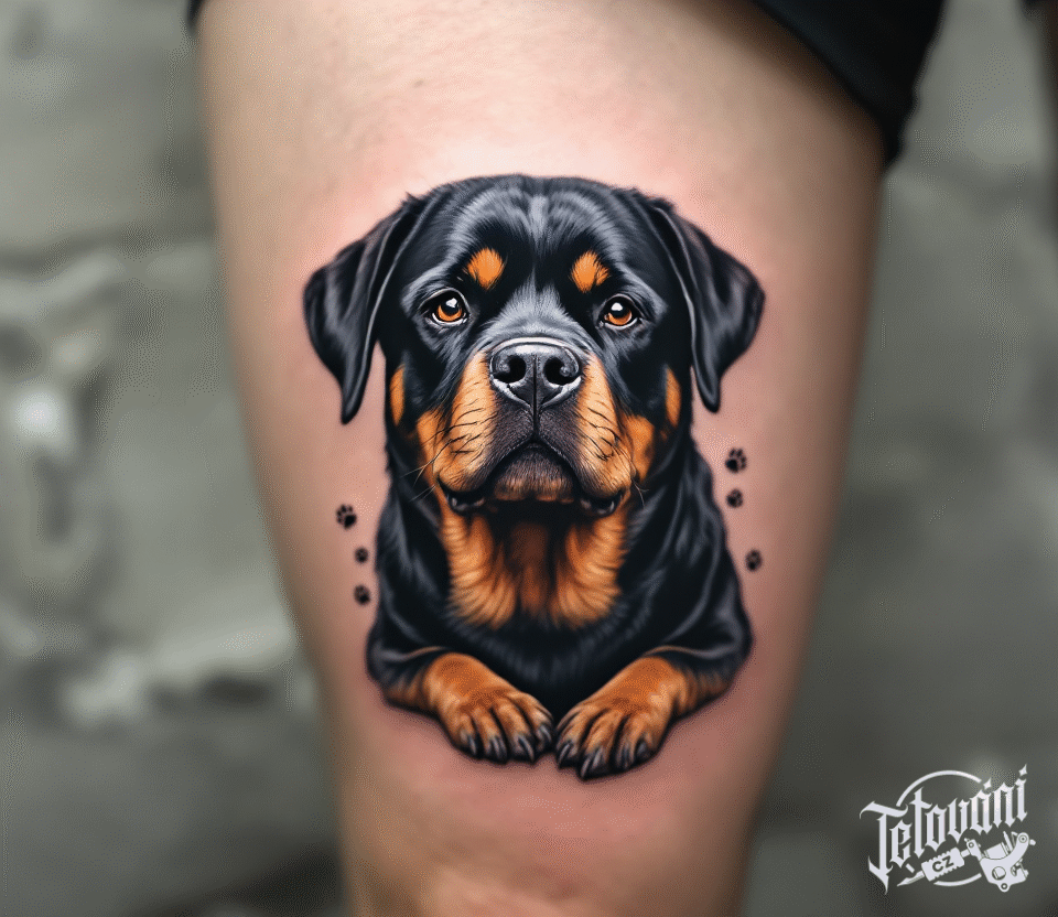 Tetování rotvajler na stehně