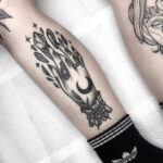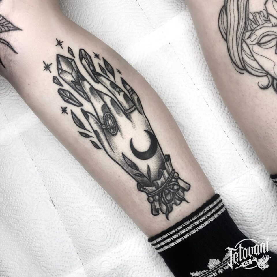 Tetování ruce a měsíc na lýtku
