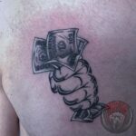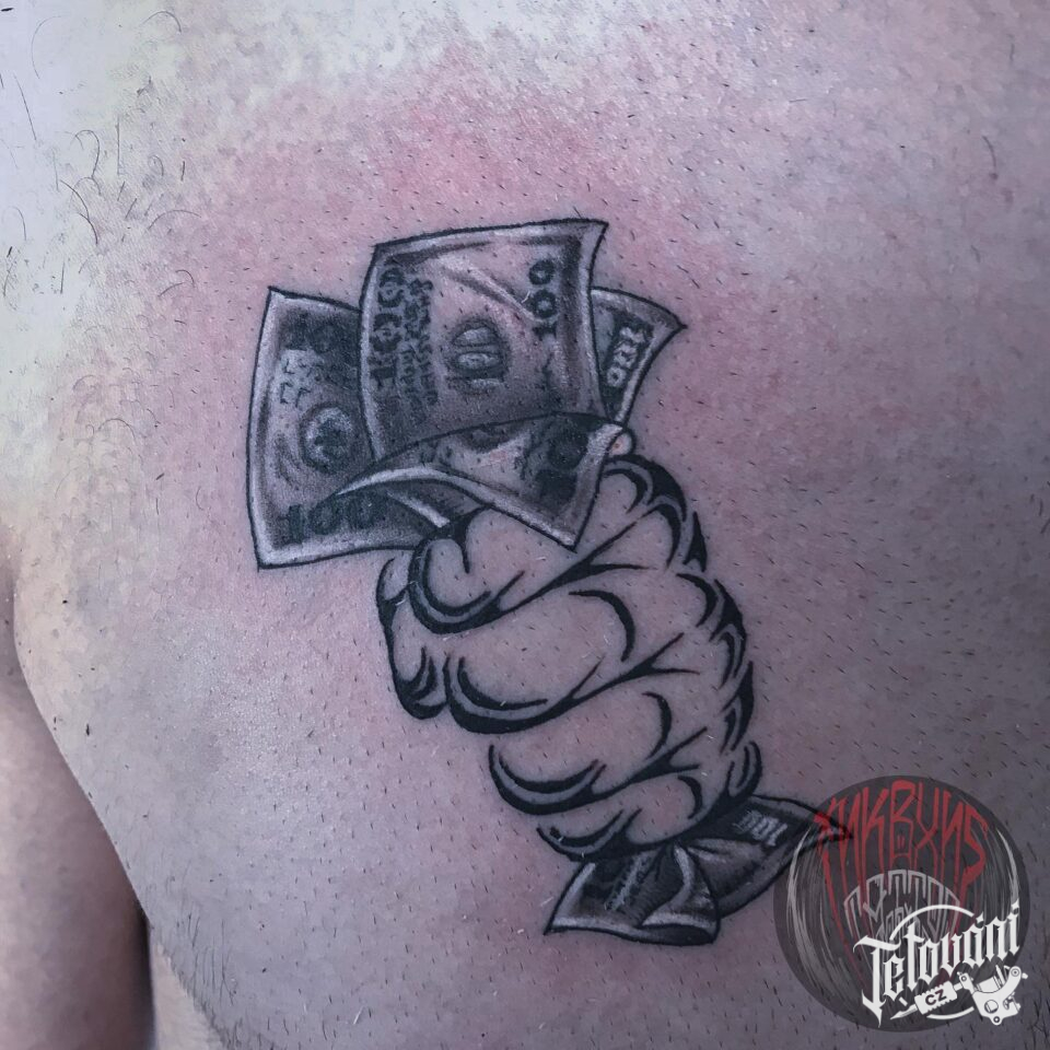 Tetování ruce a znaky a symboly, bankovky na prsa