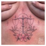 Tetování ruce, květina, symboly mezi prsa