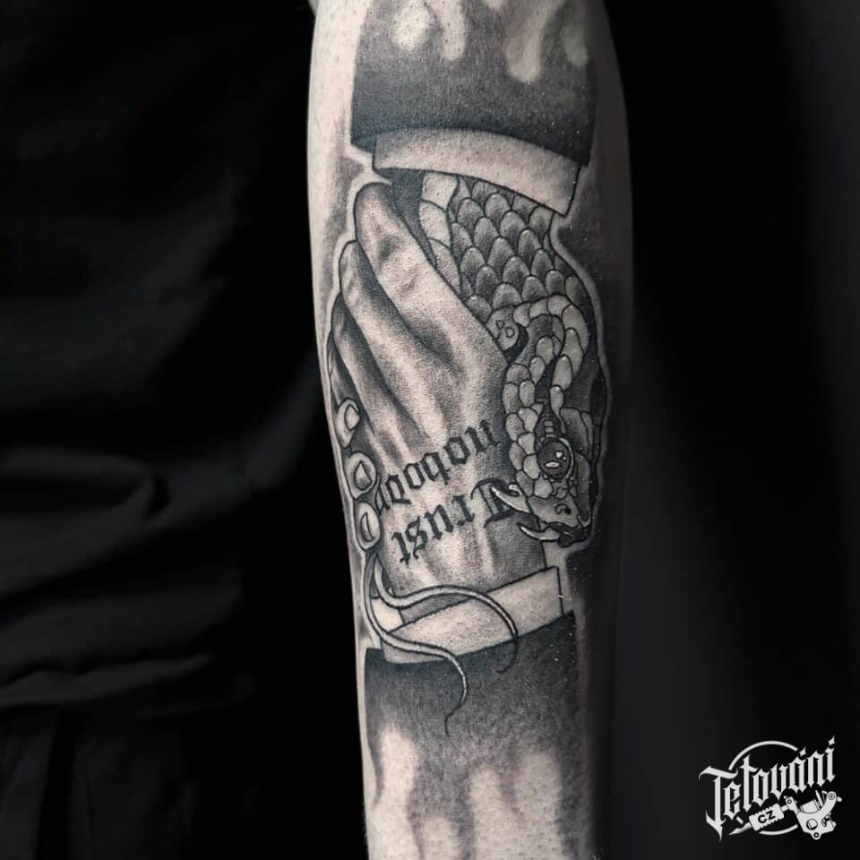Tetování ruce s hadem na předloktí