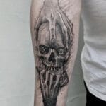 Tetování ruce s lebkou na předloktí