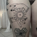 Tetování ruce, slunce, pavučina na stehno