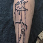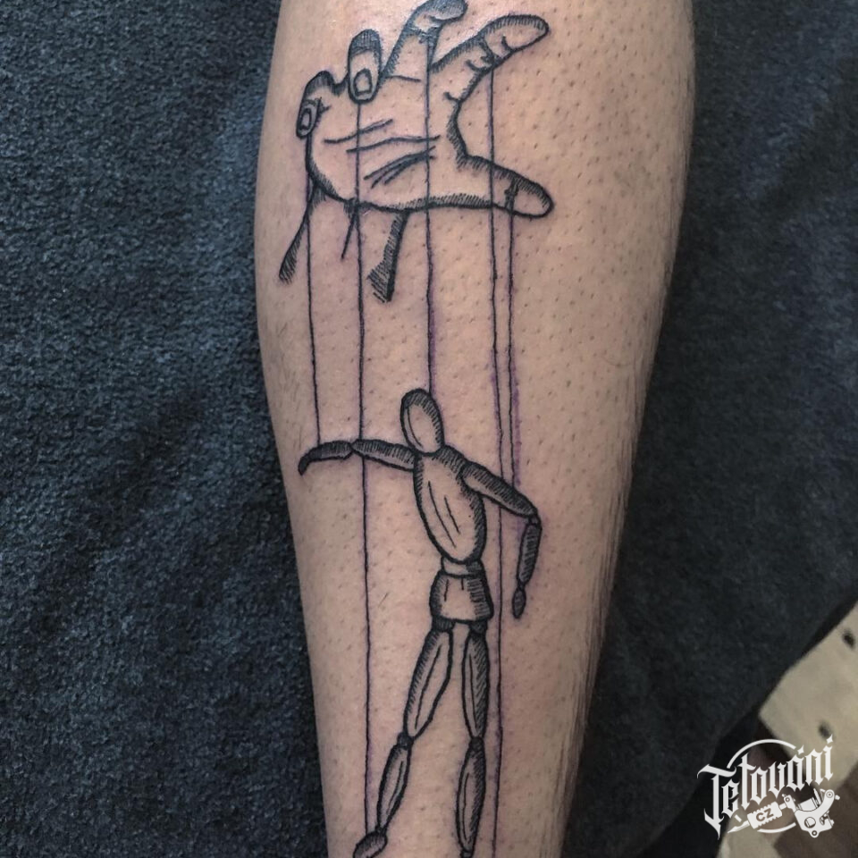 Tetování ruka a předmět loutka na lýtko