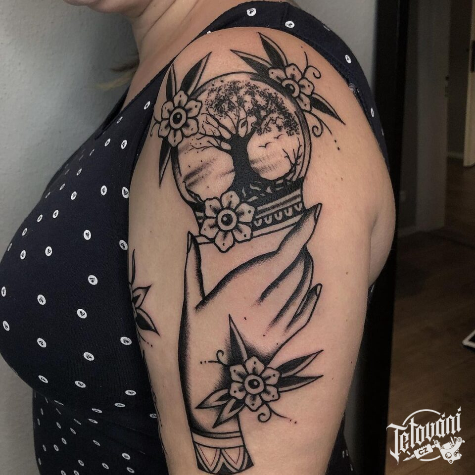 Tetování ruka a strom na rameni
