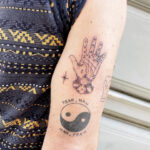 Tetování ruka a symbol Jin a Jang na rameno