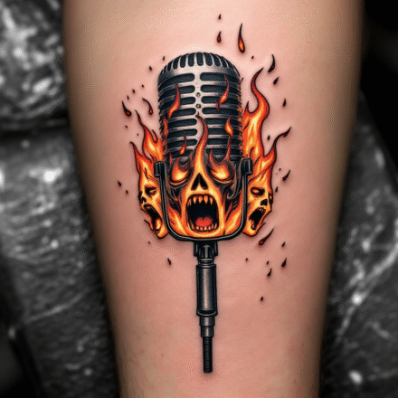 Tetování ruka, metalový symbol, květina růže na předloktí