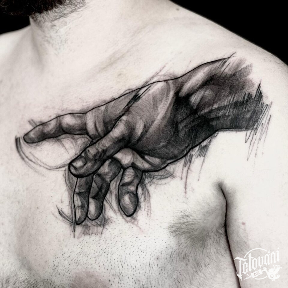 Tetování ruka na hrudi