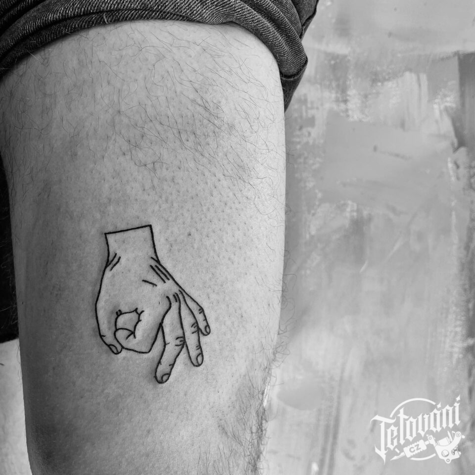 Tetování ruka na stehně