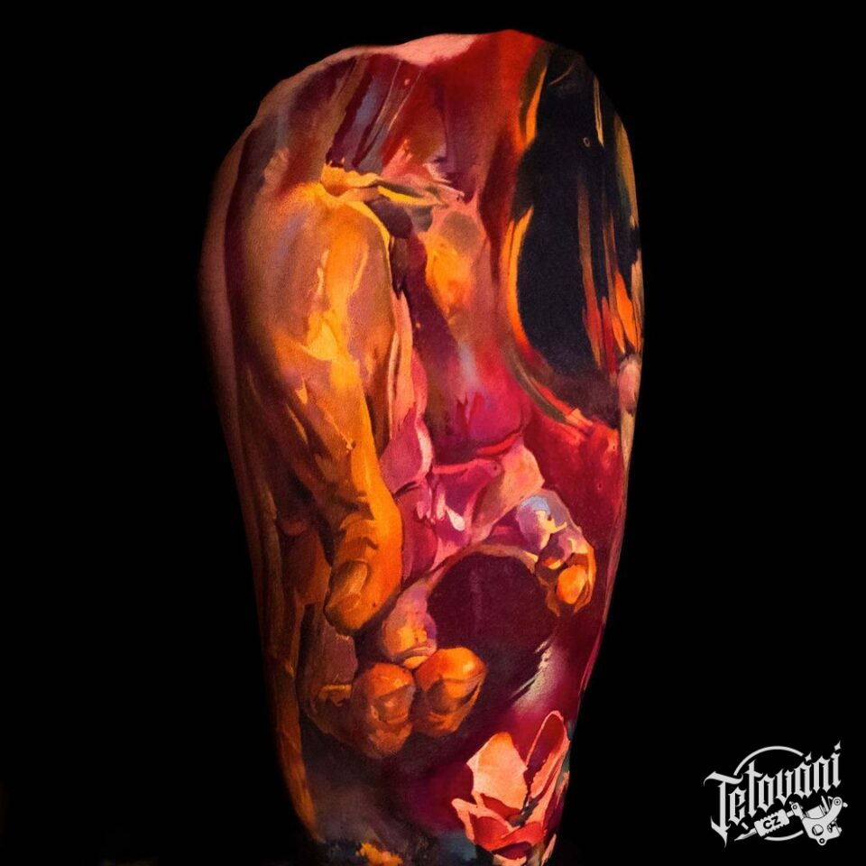 Tetování ruka na stehnu