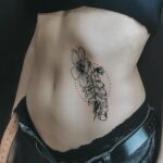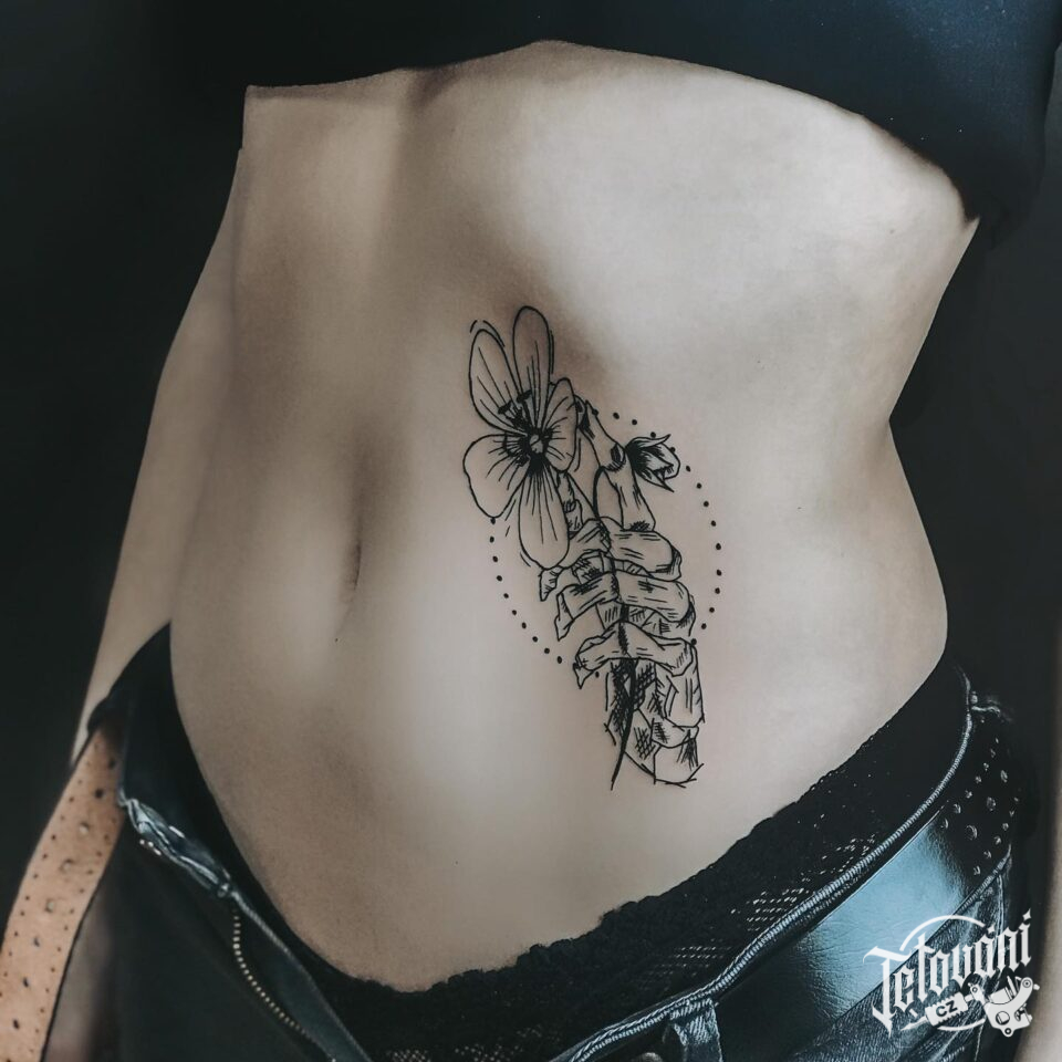 Tetování ruka s květinou na břichu