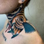Tetování ruka s okem na krku